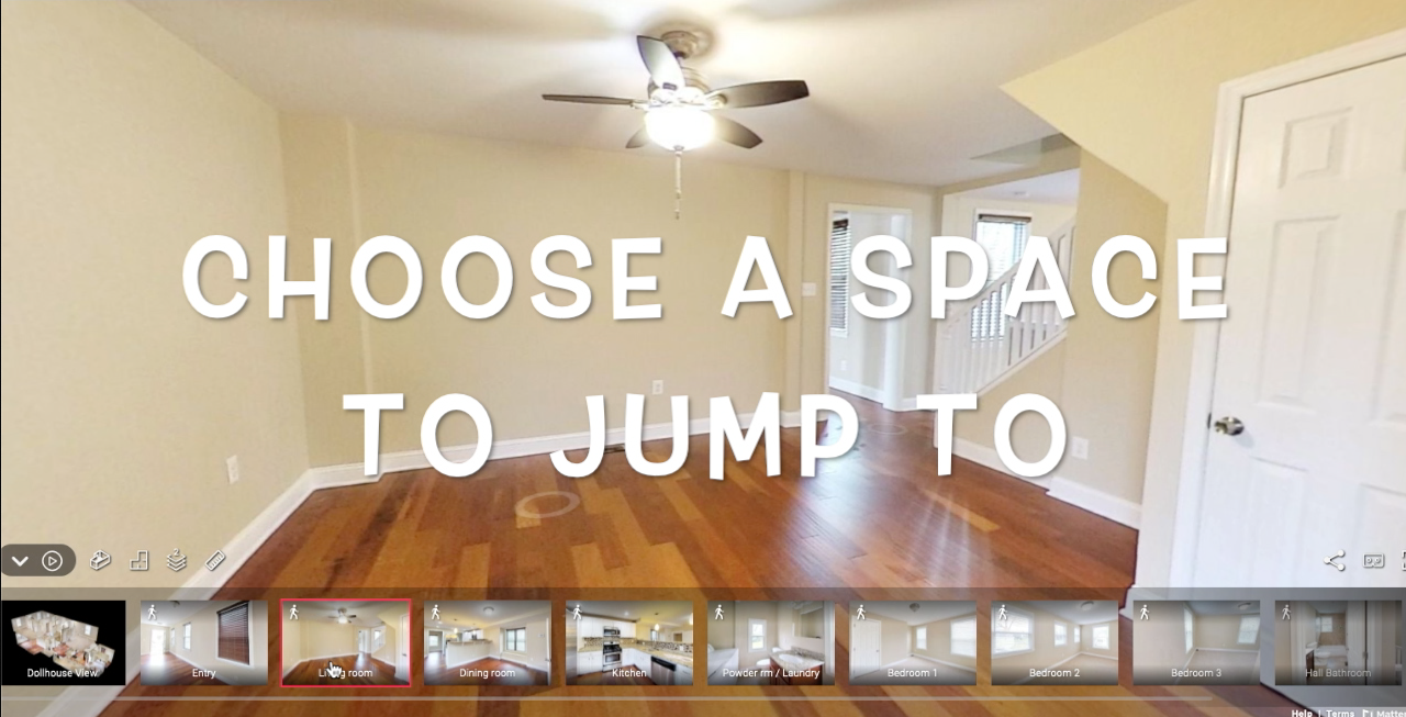 Click PLAY button and HomeScan is now a Movie that guides you thru all Rooms, on all Floors.